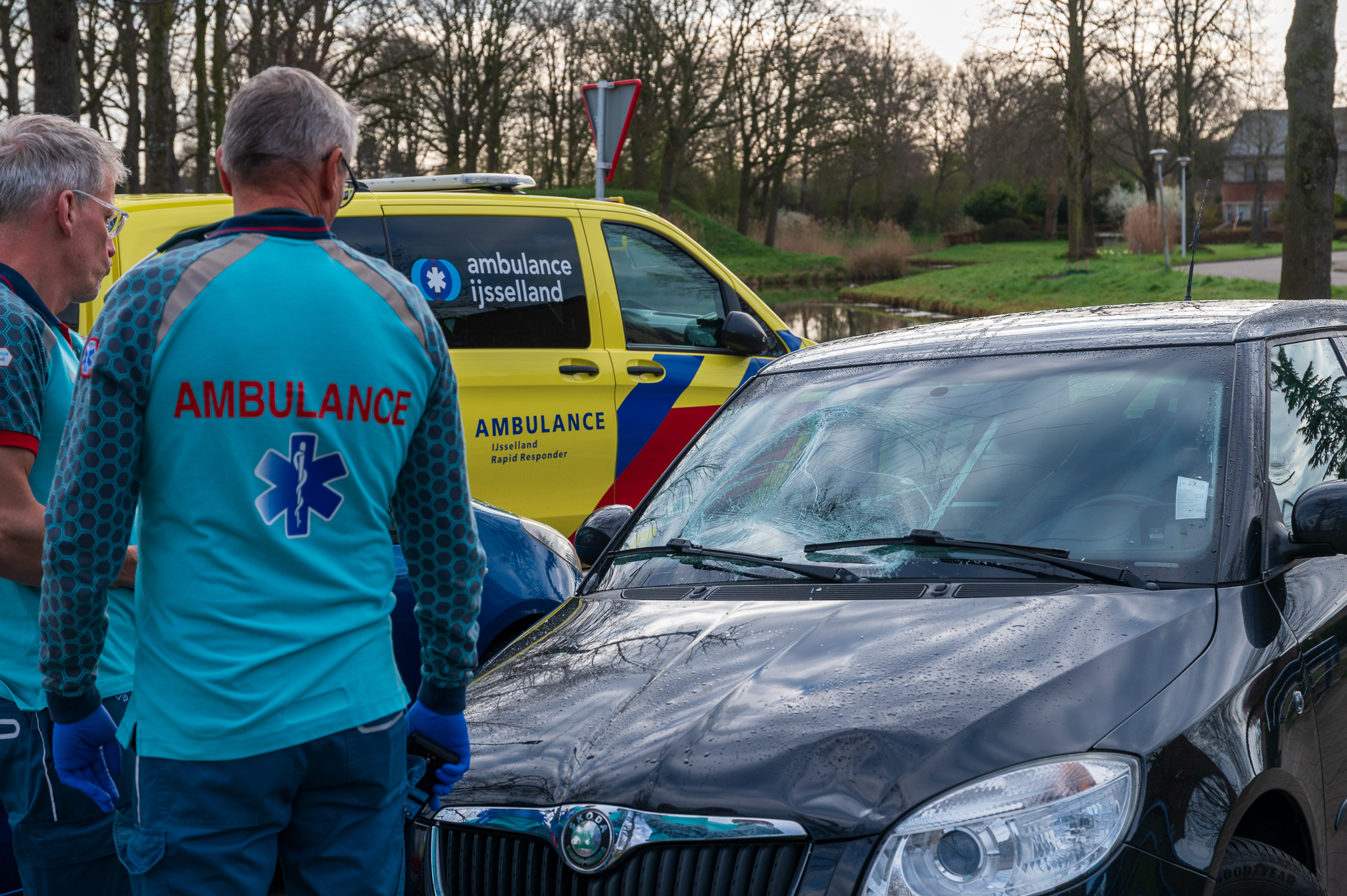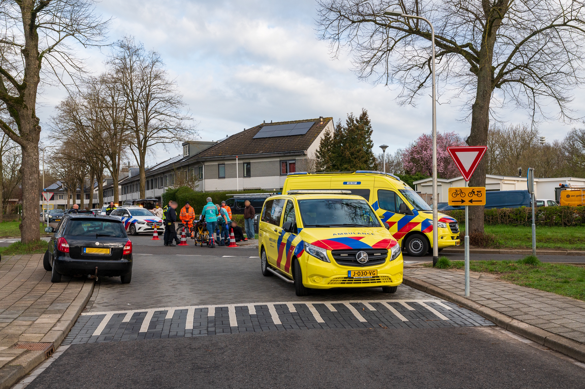 Tijdens de afhandeling van het ongeval deed zich opnieuw een bijna-aanrijding voor tussen een automobilist en een fietser.