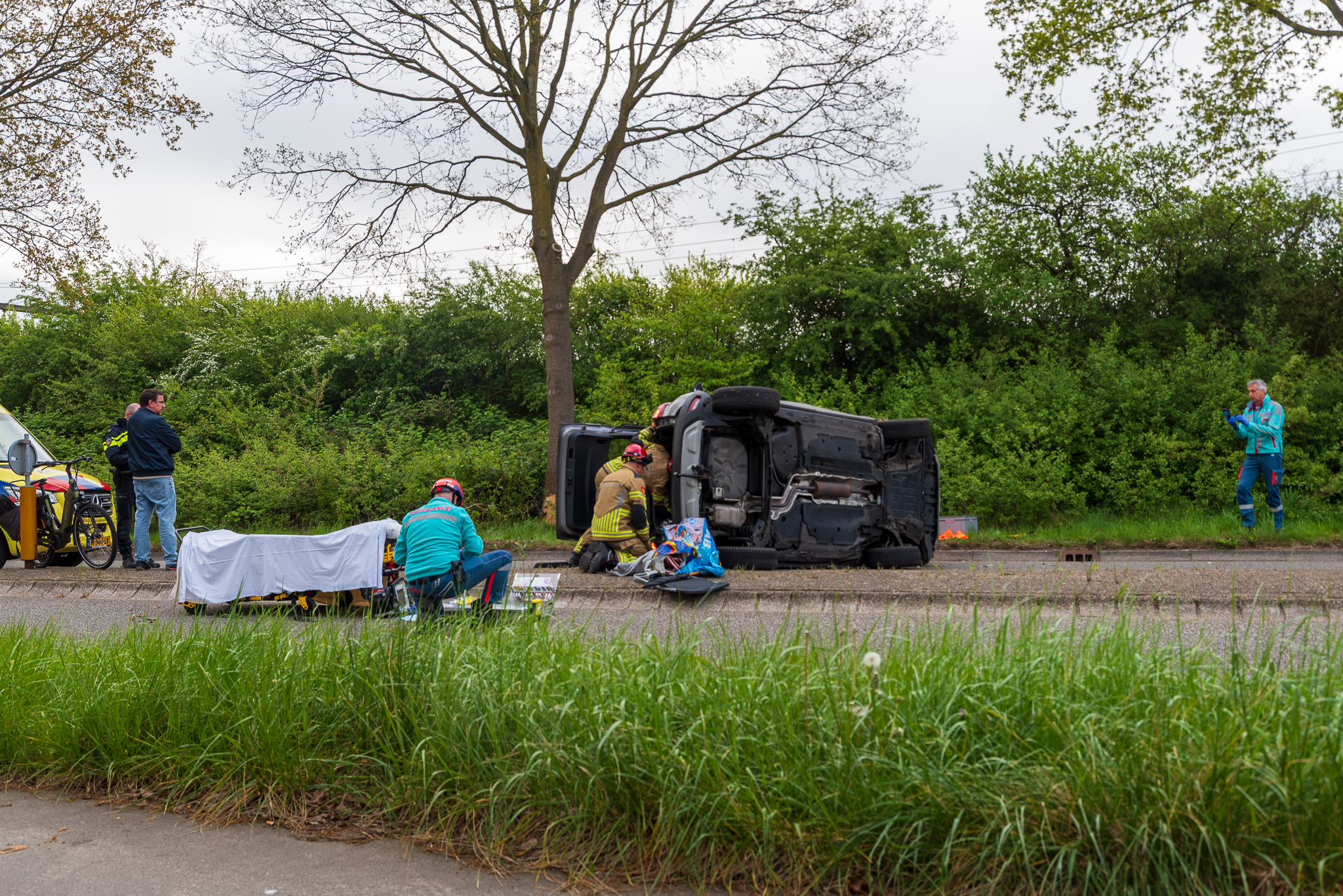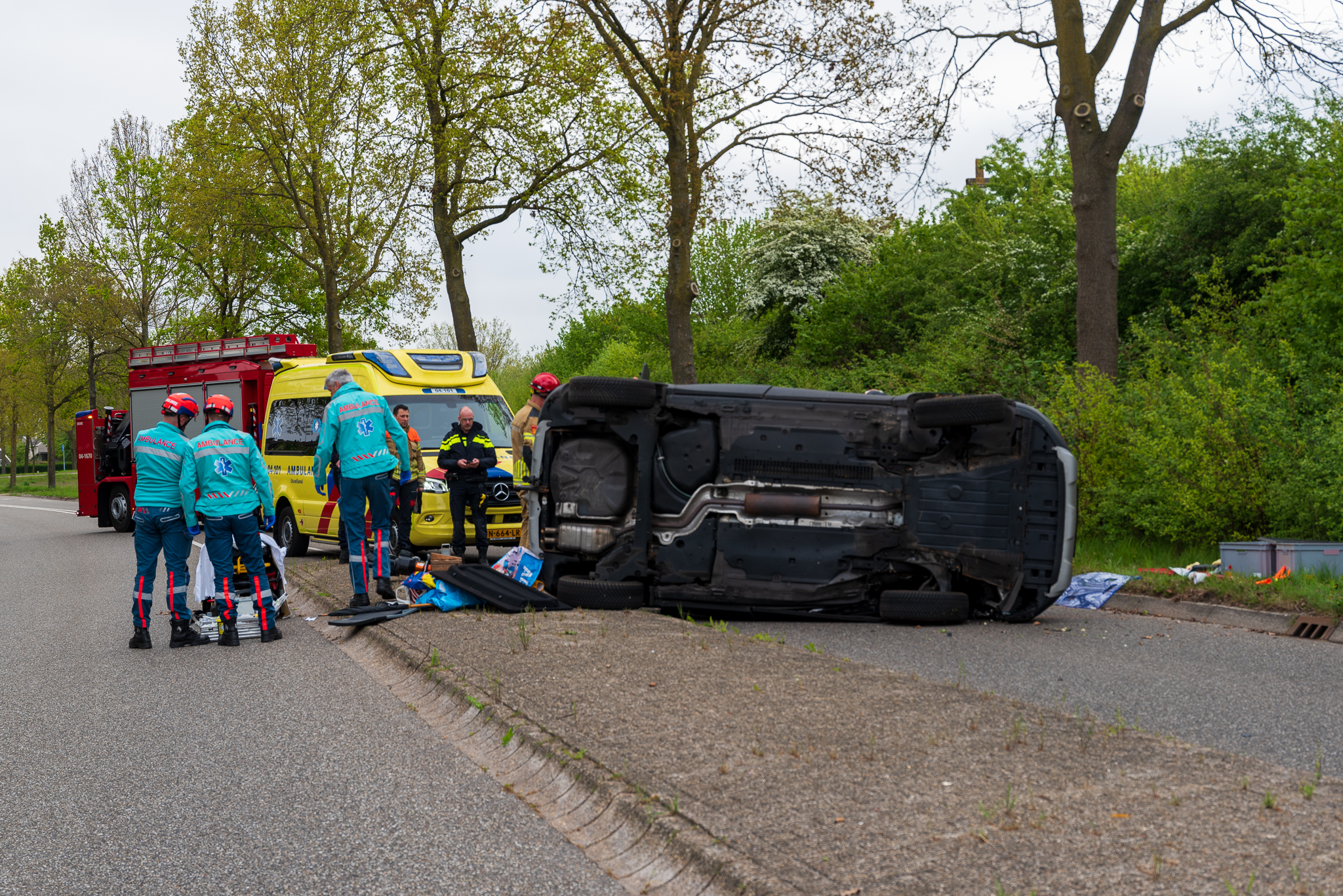 De weg was enige tijd afgesloten voor onderzoek door de politie. Het zwaar beschadigde voertuig is later door een bergingsbedrijf afgevoerd.