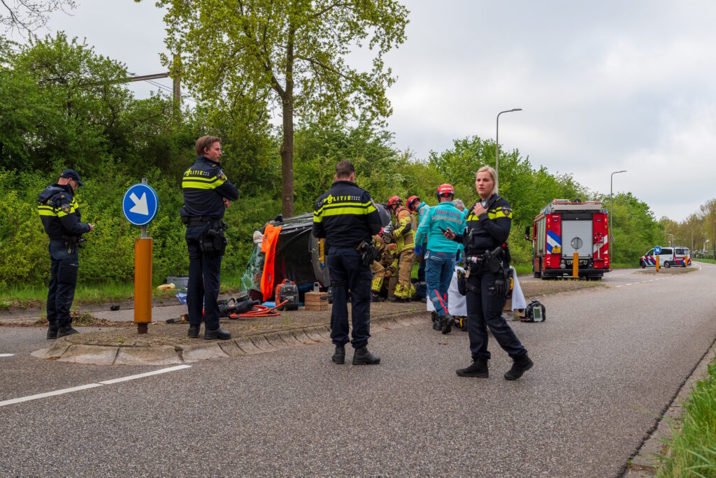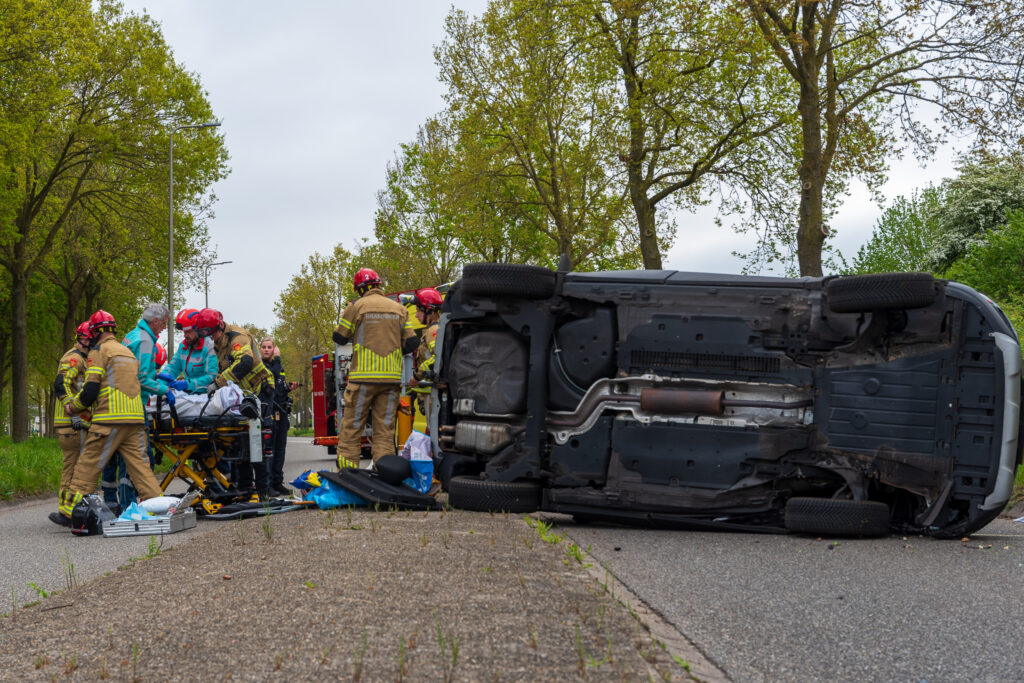 De bestuurster raakte bekneld en moest door de brandweer via de kofferbak uit het voertuig worden bevrijd. Daarna is zij met spoed per ambulance overgebracht naar het ziekenhuis.