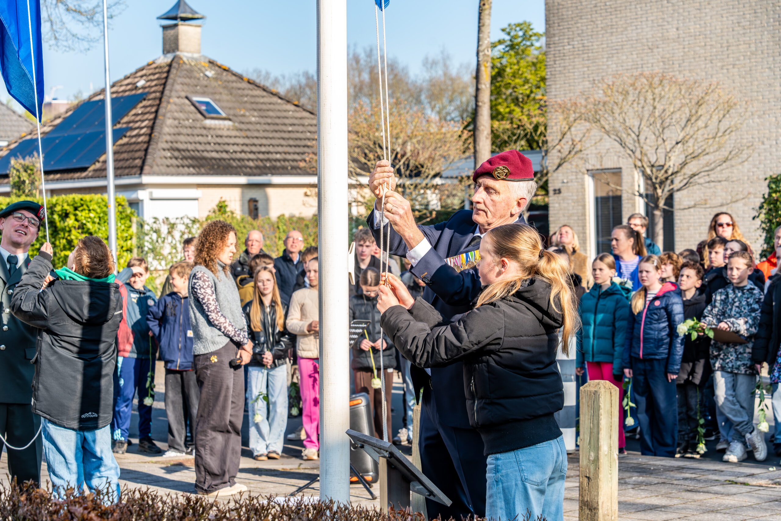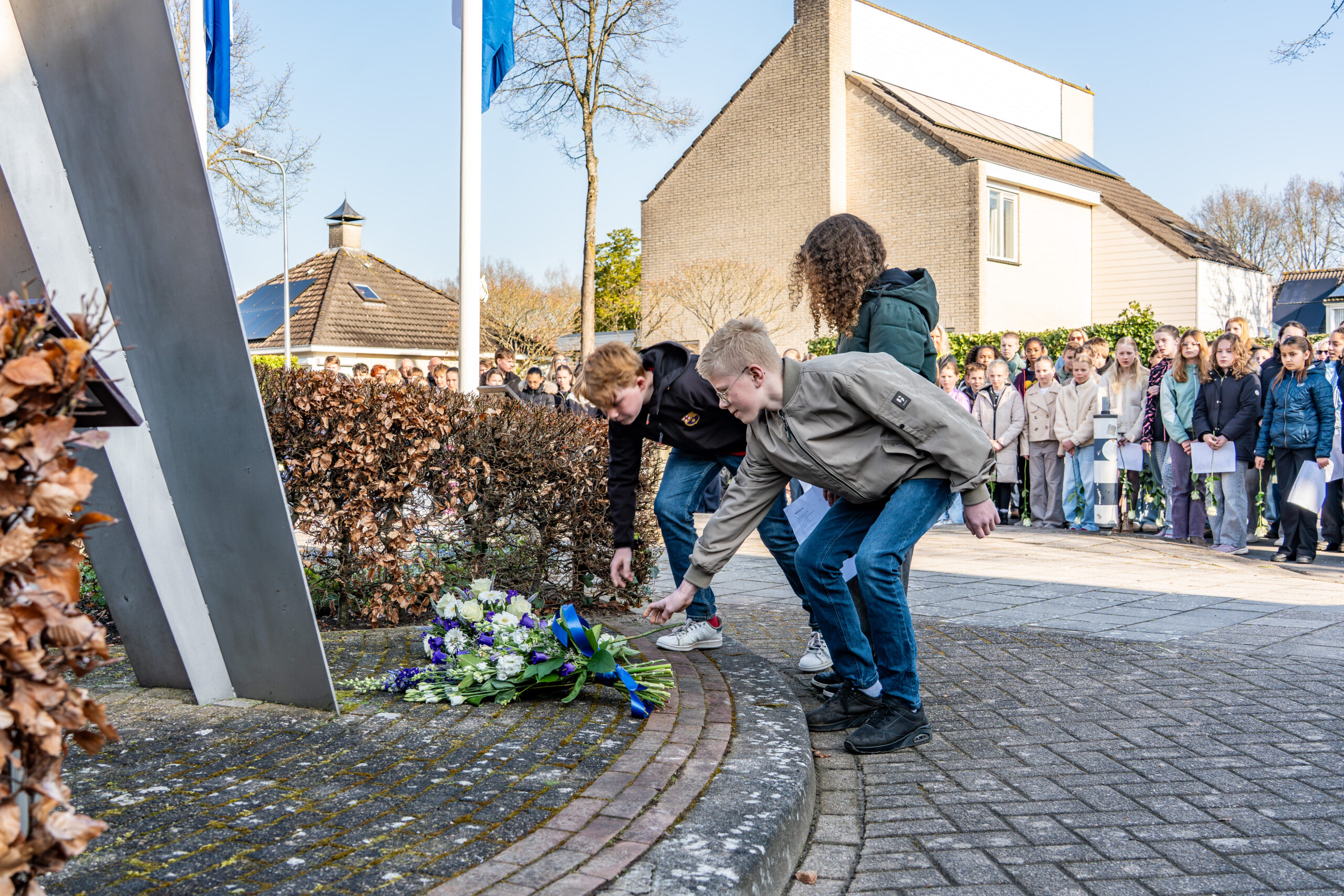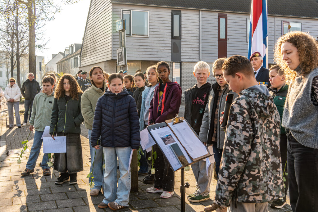 Onder de aanwezigen waren wethouder Arjan Spaans, leerlingen van basisschool De Octopus en leden van de Vereniging Veteranen Zwolle. Het monument in de wijk Schellerbroek werd in 1992 onthuld en bevat een afgebroken propeller van een neergestorte bommenwerper.