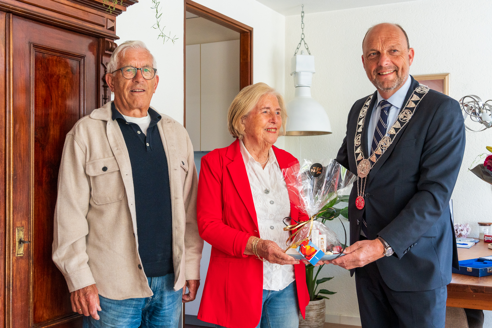 Gerrit en Helga Hultink zijn dinsdag 65 jaar getrouwd. Burgemeester Peter Snijders bracht een bezoek aan het echtpaar om hen persoonlijk te feliciteren met hun briljanten huwelijk.